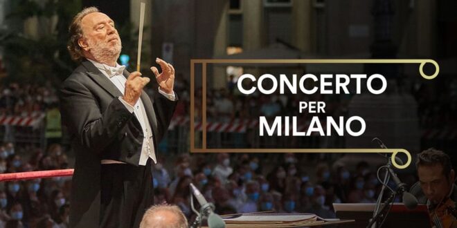 Sur le parvis de la cathédrale de Milan, Riccardo Chailly dirige l’Orchestre philharmonique de la Scala dans un programme d’oeuvres de compositeurs russes (Tchaïkovski et Prokofiev) célébrant l’Italie.