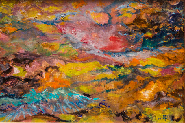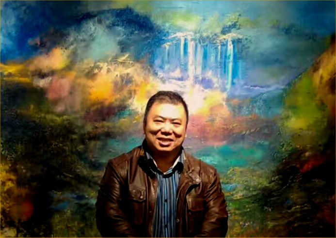 Né en 1965 à Hong Kong (CHINE), Michel Tong se passionne pour le dessin dès son plus jeune âge, après 6 ans, il suivit sa famille arrivée à Paris (FRANCE), la culture Chinoise et la culture européenne ont une grande influence sur sa peinture, voici un tableau de l’artiste, les montagnes bleus contrastent le ciel, la rivière rouge et orange, nous remémorent l’ancienne philosophie chinoise du YIN et du YANG, en même temps , les couleurs se combinent harmonieusement, cette peinture exprime une expérience qui traverse l’espace et le temps, donne des émotions à tous.